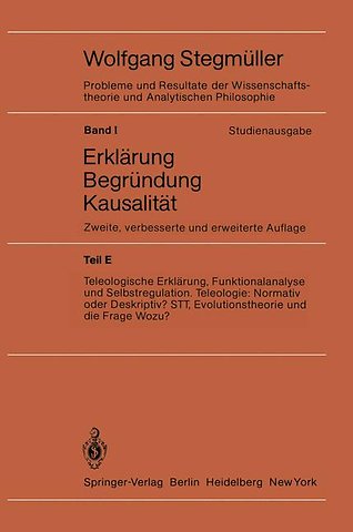 VIII. Teleologie, Funktionalanalyse und Selbstregulation.- 1. Einleitung und Überblick.- 2. Formale Teleologie.- 3. Zielgerichtetes Handeln. Zum Problem der ontologischen und semantischen Interpretation echter materialer teleologischer Erklärungen.- 4. Die Logik der Funktionalanalyse.- 5. Final gesteuerte Systeme oder teleologische Automatismen.- Anhang. Drei Betrachtungen zum Thema „Teleologie“.