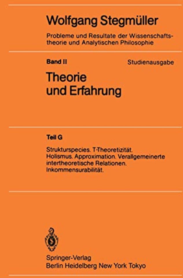 5. Leitermengen, Strukturspecies und Präzisierung der Rahmenbegriffe.- 5.1 Zwei grundlagentheoretische Kritiken am strukturalistischen Theorienkonzept.- 5.2 Leitermengen.- 5.3 Mengentheoretische Strukturen, kanonische Transformationen und Strukturspecies.- 5.4 Potentielle Modelle und Modelle als Strukturspecies.- Literatur.- 6. Theoriegeleitete Messung und innersystematische Präzisierung des Kriteriums für T-Theoretizität.- 6.1 T-abhängige Messung durch Meßmodelle.- 6.2 Verallgemeinerte Kerne und partielle Modelle. Verallgemeinerte empirische Theorie-Elemente.- 6.3 Meßmethoden und Meßmodelle (ohne und mit Skaleninvarianz).- 6.4 Das formale Kriterium für T-Theoretizität von U. Gähde.- 6.5 Die Modifikation des Gähdeschen Kriteriums durch W. Balzer.- 6.6 Diskussion.- Literatur.- 7. T-Theoretizität und Holismus. Eine Präzisierung und Begründung der Duhem-Quine-These.- 7.1 Begründung für die Wiederaufnahme der Fragestellung.- 7.2 Die realistische Miniaturtheorie T*.- 7.3 Ein simulierter Konflikt mit den Meßdaten.- 7.4 Theorienimmunität und empirischer Gehalt des Ramsey-Sneed-Satzes.- 7.5 Alternative Revisionsmöglichkeiten und ‚Kuhn-Loss-Eigenschaft‘.- 7.6 Holismus und die Rangordnung zwischen den Revisionsalternativen.- 7.7 Technischer Anhang.- Literatur.- 8. Approximation.- 8.1 Prinzipielles.- 8.2 Der formale Rahmen.- 8.3 ‚Verschmierungen‘zulässige Unschärfemengen und approximative Anwendung einer Theorie.- 8.4 Intertheoretische Approximation.- 8.5 Ein Alternativverfahren der Behandlung intertheoretischer Approximationen.- Literatur.- 9. Isolierte Theorie-Elemente und verallgemeinerte intertheoretische Verknüpfungen oder Bänder („Links“).- 9.1 Isolierte Theorie-Elemente.- 9.2 Bänder („Links“).- 9.3 Die explizite Definierbarkeit vonQuerverbindungen durch Bänder.- 9.4 Eine Formulierung des Sneedschen Theoretizitätskriteriums mit Hilfe von Bändern.- 9.5 Empirische Theorienkomplexe.- 9.6 Abstrakte Netze und gerichtete Graphen.- 9.7 Versuch einer systematischen Klassifikation von Bändern.- 9.8 Philosophische Ausblicke.- 9.9 Philosophisch-historische Anmerkung.- Literatur.- 10. Inkommensurabilität, Reduktion und Übersetzung.- 10.1 Das Argument von D. Pearce.- 10.2 Philosophische Diskussion des Argumentes von Pearce.- Literatur.