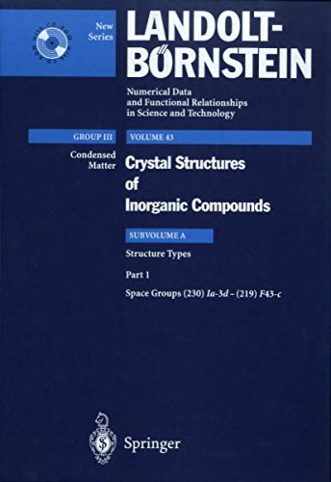 Volume 43 of Group III deals with crystallographic data of both intermetallic and classical inorganic compounds, thus forming an update of the former Landolt-Börnstein volumes III/6 (Structure Data of Elements and Intermetallic Phases) and III/7 (Crystal Structure Data of Inorganic Compounds). It does not include compounds that contain C-H bonds.