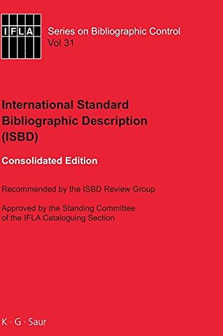 Merges the texts of seven ISBDs (for books, maps, serials, sound recordings, computer files and other electronic resources, etc) into a single text. This work is useful and applicable for descriptions of bibliographic resources in several types of catalogues.