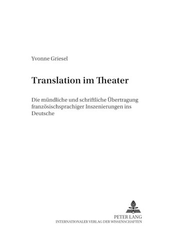 Die Muendliche Und Schriftliche Uebertragung Franzoesischsprachiger Inszenierungen Ins Deutsche