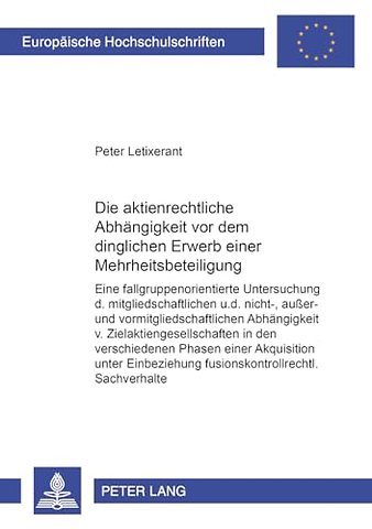 Eine Fallgruppenorientierte Untersuchung Der Mitgliedschaftlichen Und Der Nicht-, Außer- Und Vormitgliedschaftlichen Abhaengigkeit Von Zielaktiengesellschaften in Den Verschiedenen Phasen Einer Akquisition Unter Einbeziehung Fusionskontrollrechtlicher Sac