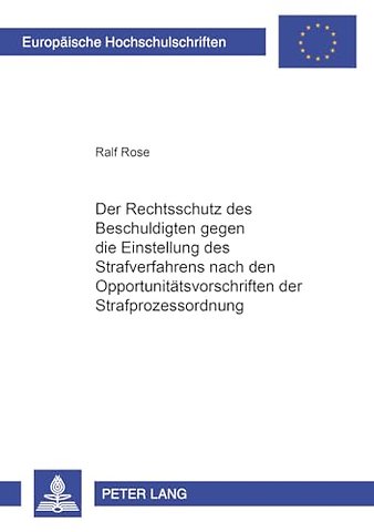 Der Rechtsschutz Des Beschuldigten Gegen Die Einstellung Des Strafverfahrens Nach Den Opportunitaetsvorschriften Der Strafprozessordnung