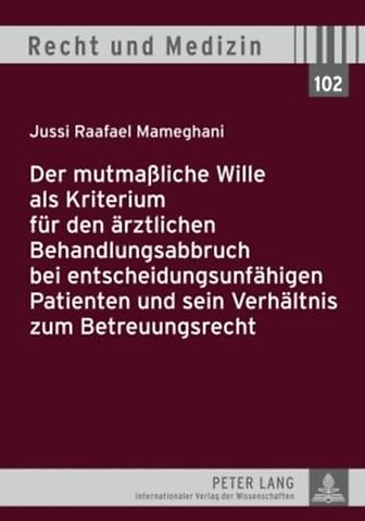 Der Mutmaßliche Wille ALS Kriterium Fuer Den Aerztlichen Behandlungsabbruch Bei Entscheidungsunfaehigen Patienten Und Sein Verhaeltnis Zum Betreuungsrecht