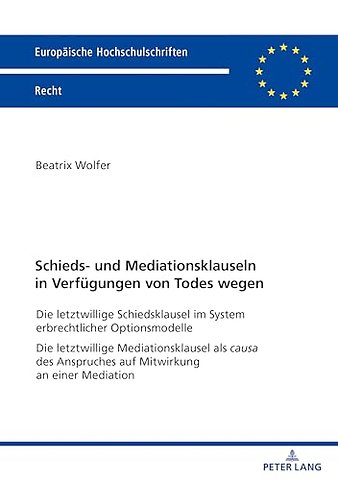 Die letztwillige Schiedsklausel im System erbrechtlicher Optionsmodelle Die letztwillige Mediationsklausel als causa des Anspruches auf Mitwirkung an einer Mediation