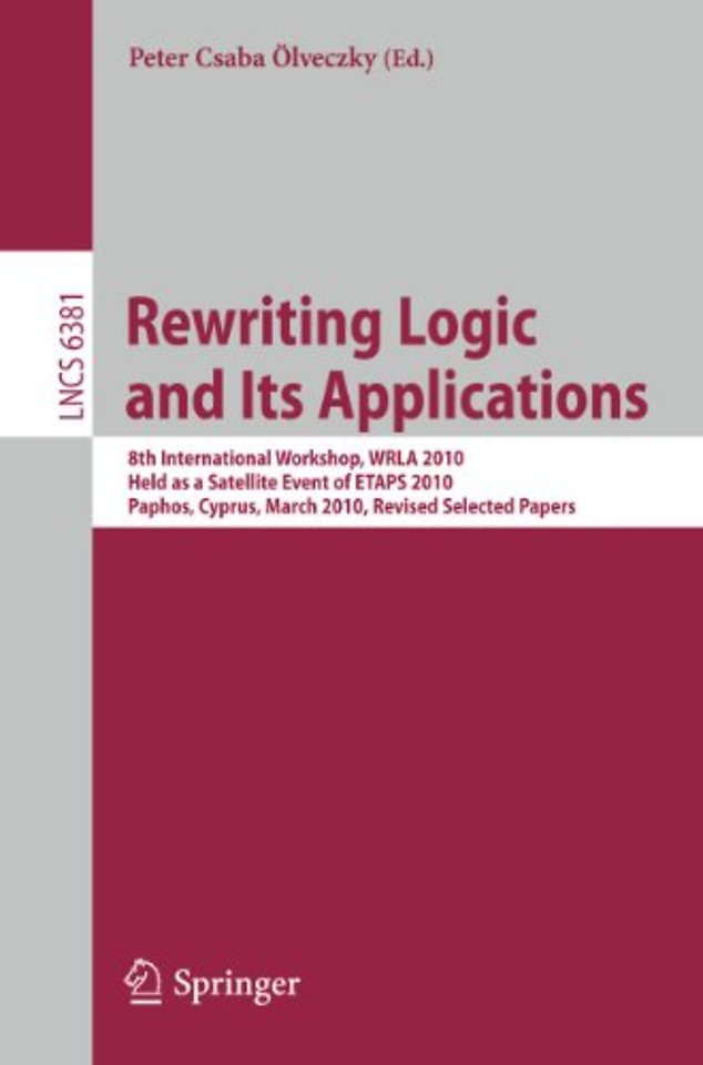 This volume contains the proceedings of the Eighth International Workshop on Rewriting Logic and its Applications (WRLA 2010) that was held in Paphos, Cyprus, March 20–21, 2010, as a satellite workshop of the European Joint C- ferences on Theory and Practice of Software (ETAPS 2010). Rewriting logic is a natural semantic framework for representing conc- rency,parallelism,communicationandinteraction,aswellasbeing anexpressive (meta)logical framework for representing logics. It can then be used for spe- fying a wide range of systems and programming languages in various appli- tion ?elds. In recent years, several executable speci?cation languages based on rewriting logic (ASF+SDF, CafeOBJ, ELAN, Maude) have been designed and implemented. The aim of the WRLA workshop series is to bring together - searchers with a common interest in rewriting logic and its applications, and to give them the opportunity to present their recent works, discuss future research directions, and exchange ideas. Previous WRLA workshops were held in Asilomar (1996), Pont-a-Mousson ` (1998), Kanazawa (2000), Pisa (2002), Barcelona (2004), Vienna (2006), and Budapest (2008), and their proceedings have been published inElectronic Notes in Theoretical Computer Science. In addition, selected papers from WRLA 1996 have been published in a special issue of Theoretical Computer Science,and selected papers from WRLA 2004 appeared in a special issue of Higher-Order and Symbolic Computation.
