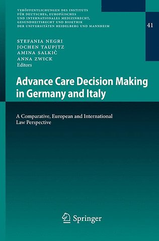 What is the situation of people who are unable to make decisions due to a physical or mental change? This book gives impulses and answers to many ethical, economical and mainly legal questions which arise and are associated with the end of life. A universal human rights approach and the analysis of the relevant European law are put in front of the presentation of the national legal situations in Italy and Germany. The most topical and controversial issues concerning advance care planning are presented as well as a transnational economic analysis on the effects of advance care planning.​