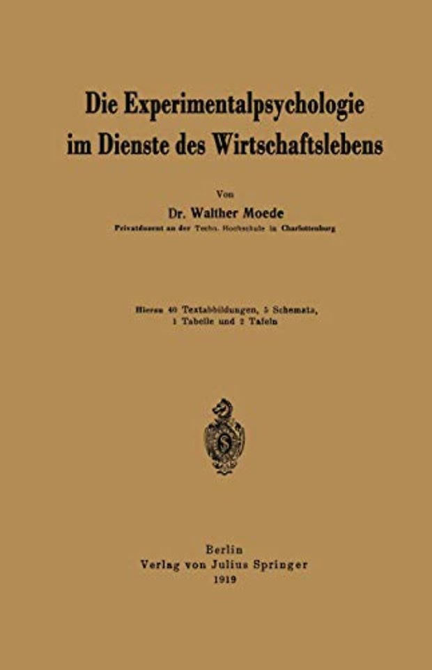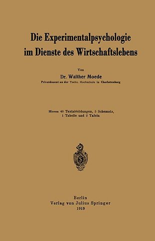 I. Die industrielle Psychotechnik im Dienste der Gütererzeugung.- A. Die Berufsberatung auf Grund experimenteller Eignungsprüfung.- 1) Erfahrungen und Prinzipien der experimentellen Eignungsprüfung.- Begriff der psychologischen Untersuchung. Wesen der experimentellen Eignungsprüfung.- 2) Die experimentelle Kraftfahrer-Eignungsprüfung.- Hauptpunkte dieser Eignungsprüfung: Sinnesprüfung. Untersuchung der Aufmerksamkeit. Die Reaktionsprüfung. Optimale Grundwerte. Reaktionsformen. Prüfung der Tatbereitschaft entsprechend den Bedingungen des Lebens: Reaktionen bei belastetest Bewußtsein auf unerwartete Reize. Stïunngen: Augennil Ohrablenkuüg. Das System der analytischen Funktionsprüfung. Reaktionen auf unerwartete und erwartete Reize als einfache und komplexe Willenhandluigen. Mehrfachhandlung. Wahl und FntsetdttLifàhigkeit. Parallelismus von Prüfungsbefund und Fahrpraxis.- Gesichtspunkte der Arbeitsfähigkeitsprüfung: Ermüdungsmessung. Der Ergograph. Gute und. schlechte Arbeitskurzen. Unendliche Arbeit und Gleichgewichtspause. Prüfung der Uebungsfahigkeit sowie. der Erregbarkeit.- Das Kraftfahrer-Eignungsgutachten: Kontrolle der Untersuchungsbefunde durch die Praxis. Bewahrung der Untersuchungsprinzipien.- 3) Das Prüfungs-Laboratorium der sächsischen Staatseisenbahn in Dresden und andere Priifstellen für Fahrer.- 4) Einige Ergebnisse der Kraftfahrer-Eignungsprüfung.- Lebensalter und Kraftfahrereignung. Leistung und Lebensalter in der industriellen Praxis.- Die Möglichkeiten und Mittel der Eignungsprüfung sowie Berufsberatung. Die Fragebögen.- 5) Bedenken der Praxis gegen die Einführung der experimentellen Eignungsprüfung.- Die vertrauensärztliche sowie psychologische Untersuchung der Betriebsangehörigen. Stellung der Gewerkschaften. Nichtigkeit theoretischer Bedenken. Der rechte Mann an den rechten Platz. Bisherige Prüfungsverfahren bei Lehrlingsannahme sowie ihre Bedenklichkeit. Bedeutung von Präzisionsleistungen für die Industrie. Verschiebung der Arbeitsleistungen auf kleinste Muskeln als Folge der industriellen Entwicklung.- 6) Stand der experimentellen Untersuchungsmethodik.- Schwellenwerte der Sinnesprüfung. Gesichtspunkte der Prüfung höherer Funktionen. Das Untersuchungsprogramm der Berliner Begabtenprilfung. Kontrolle — der Prüfungsergebnisse durch die Praxis. Ausdehnung der. Prüfung auf Lehrlinge, Stellungsuchende, Kriegsbeschädigte.- B. Die Psychotechnik im Dienste derRationalisierung der Arbeitsprozesse.- Optimal e Gestaltung der Arbeitsbedingungen als Aufgabe. Quantitative und qualitative Arbeitsstudien. Laboratoriumsversuch und praktisch industrielle Tätigkeit. Kriipelins Arbeitskurven. Hauptfaktoren der Arbeit. Uebung. Ermüdung und Pause. Cnendliche Arbeitskurven. Das Ideal der Arbeitsgestaltung.- II. Der Güterabsatz in psychotechnischer Beleuchtung.- 1) Die psychotechnische Eichanstalt.- 2) Psychotechnik der Reklame.- Die Faktoren ihrer Werbewirksamkeit. Beispiele praktischer Untersuchungen: Sichtbarkeit Parbigcr Flächen. Musterschutzgutachten.- Zentralstätten der angewandten.Psychotor ie. Ihre Stellung in der Organisation der Teeilnisehenand Handelshochschulen. Psychotechnik und Betriebswissenschaft.- Aussprache.- Prof. Dr. Schlesinger, Direktor des Versuellsleides für Werkzeugmaschinen und Betriebslehre an der Technischen Hochschale Charlottenburg.- Beweguugs-und Zeitstudien im Interesse der Kriegsbeschädigten. Frilen. Hämmern. Gehmöglichkeiten der Beinamputierten. Bewegungs-und Zeitstudien an Normalen im Interesse der Rationalisierung der Arbeitsprozesse: Briefstempeln. Bohren und Werkstückagerung. Chirurgisches W undniihen. Notwendigkeit psychotechnischer Zentralstätten an den Technischen Hochschulen.- Direktor Riehe, Riebe-Werk, Berlin-Weissensee, Kugellager und Werkzeugmaschinen.- Prüfung der Gelenk empfi id1ichkeit mittels eines mechanischen Gelenkprüfers als Eignungsprüfung für die Bedienung bestimmter Maschinen. Die Erfahrungen mit dem Apparat in der Praxis.- Dr.-Ing. Heiland, Leiter der Lehrlingsschule der AEG: Die psychotechnische Lehrlingsprüfung der AEG.- Hr. Linke: Kritische Bedenken gegen die Untersuchungsmethodik der Psychologie.- Dr. Piorkowski: Priifung der Urteilsfähigkeit sowie der Kombinationsleistungen.- Dr. Heiland: Bedeutung der Bekanntheit des Prüflings mit den Prüfmethoden.- Dr. Moede (Schlußwort): Beantwortung der Anfragen und Widerlegung der Bedenken.- Die Wirkung der Bekanntheit. Die Prüfung rein er Fähigkeiten. Bedeutung der Uebung und Uebungs-fähigkeit. Die Gefahren der praktisch psychologischen Untersuchung sowie ihre Ueberwindung.- Einfluß der Hebung auf den Prüfungsbefund. Gesichtspunkte der psychologischen Differentialdiagnose. Studien der Uebungsfähigkeit. Die Hemmungen des Berufsfahrers. Prüfung der Entfernungs-und Geschwindigkeitsschätzung.- Psychische Maßprinzipien. Sinnesuntersuchung. Urteilfsähigkeit und Wille. Charaktereigenschaften und planen ißige Beobachtung. Physiologische, psychophysische und psychische Augenermüdung. Farbensichtbarkeit. Grundlagen der psychologisch en Wissenschaft.- Phychotechnische Vorstöße der Praktiker.- Nachwort.- Die Fortentwicklung der industriellen Psychotechnik.- Psychologie der Reklame an der Handelshochschule Berlin. Industrielle Lehrlingsprüfung. Arbeiterannahme auf Grung experimenteller Eignungsprüfung im Riebe-Werk, Berlin-Weißensee. Berufsbetätigung Kriegsgeschädigter und ihre wirtschaftlichen Ergebnisse. Prof. Schlesingers Studien. Zeitmessende Hilfsmittel: Poppelreuters Arbeitsschauuhr.- Die Forschungsstätte für industrielle Psychotechnik an der Technischen Hochschule Charlottenburg und ihr Arbeitsprogramm. Als Beispiel ihrer Tätigkeit: Die Lehrlingsauslese und ihre Methoden.