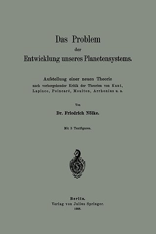 I. Teil. Kritik der wichtigsten vorhandenen Theorien..- § 1. Einleitung..- Die Kant-Laplacesche Theorie.- Vorgänger.- § 2. Die Kantische Theorie.- Übersicht über die Theorie.- Grundvoraussetzung der Theorie.- Dichte der Scheibenmaterie.- Massen der Planeten1).- Dichte der Planeten und der Monde.- Exzentrizität der Planetenbahnen.- Schiefe der Achsen.- Rotationsrichtung der Planeten.- Freie Beweglichkeit der Teilchen.- Entstehung der Monde.- Holzmüllers Kritik der Kantischen Theorie.- § 3. Die Theorien von L. Zehnder und von Fr. Weiß..- Zehnders Erklärung der Rotationsbewegung.- Das Gesetz der Satellitenbildung von Fr. Weiß.- Neuere Erklärungen der Rotationsbewegung.- § 4. Die Pseudo-Laplacesche Theorie..- Übersicht über die Theorie.- Gültigkeit des Flächensatzes.- Annahme der Homogenität.- Abtrennung von Teilmassen.- Gründe gegen die Anwendbarkeit des Flächensatzes.- Unveränderlichkeit der Rotationsenergie.- Einfluß der Abplattung.- Freie Beweglichkeit der einzelnen Teilchen.- Unmöglichkeit einer Kontraktion.- Ungleich dichtes Ellipsoid.- § 5. Die Poincarésche Theorie..- Unbewiesene Annahme der Pseudo-Laplaceschen Theorie.- Poincarés Untersuchungen.- Poincarés Theorie.- Kinetische Energie der Planeten.- Ungültigkeit des Flächensatzes. Unveränderlichkeit der Rotationsenergie.- Achsen des kritischen Rotations-und des kritischen Jacobischen Ellipsoids.- Kinetische Energie der Monde.- Massen der Planeten und der Monde.- Ungleich dichte Zentralmasse.- Rotationsgeschwindigkeit der Sonne.- Der innere Marsmond und die inneren Teile der Saturnsringe.- Andere Mängel.- Allgemeines Bedenken.- § 6. Die Laplacesche Theorie..- Übersicht über die Theorie.- Richtige Würdigung der Theorie.- Masse der Atmosphäre.- Kugelförmige Kernmasse.- Gültigkeit des Flächensatzes.- Größe der Kernmasse und Höhe der Atmosphäre.- Dichte der Atmosphäre.- Masse der Atmosphäre.- Rotationsenergie der Atmosphäre.- Oberflächentemperatur der Kernmasse.- Diskussion der Rechnungsresultate.- Revolutionsenergie der Planeten.- Korrektion der Resultate.- Bedenken gegen die Anwendbarkeit des Flächensatzes. Unveränderlichkeit der Rotationsenergie.- Oberflächentemperatur der Kernmasse.- Korrektion der Rechnungsresultate.- Rotationsrichtung der Planeten.- Die Fay esche Erklärung.- Der innere Marsmond und die inneren Teile der Saturnsringe.- Revolutionsenergie der Monde.- Der rückläufige Mond Saturns.- Neigung der Planetenbahnen.- § 7. Die Moulton-Chamberlinsche Theorie.- Vorbemerkung.- Übersicht über die Theorie.- Der Spiralnebel.- Die einleitende Katastrophe.- Entstehung des Spiralnebels.- Die Umlaufsbewegung der Planeten.- Die Rotation der Sonne.- Die Exzentrizitäten der Planetenbahnen.- Die Rotation der Planeten.- Die Monde.- Schlußbemerkung.- § 8. Die Theorien von Svante Arrhenius und von Peterson-Kinberg..- a) Die Theorie von Svante Arrhenius..- Stellung zu Kant und Laplace.- Übersicht über die Theorie.- Kritik der Theorie.- b) Die Theorie von Peterson-Kinberg.- Vorbemerkung.- Übersicht über die Theorie.- Kritik der Theorie.- § 9. Rückblick..- Richtige Beurteilung unserer Kritik.- II. Teil. Aufstellung und Begründung der neuen Theorie.- A. Einleitung..- § 10. Mängel der alten Theorien..- Vergleichende Zusammenstellung.- Noch nicht erklärte Eigentümlichkeiten.- B. Allgemeine Grundlagen der Theorie.- § 11. Der Urnebel..- Form und Natur der Nebel. Spektra.- Entwicklung der Nebel.- § 12. Physikalische Hypothesen..- Wesentliche und unwesentliche Annahmen.- Erste wesentliche Annahme.- Zweite und dritte wesentliche Annahme.- Begründung der zweiten wesentlichen Annahme.- Begründung der dritten wesentlichen Annahme.- 1. Saturnsringe.- 2. Die Jupitersmonde I, II, III.- 3. Kometenbahnen.- 4. Änderung der Exzentrizität.- 5. Der Enckesche Komet.- Charliers Erklärung.- 6. Dichte des Äthers.- 7. Sternschnuppen und Meteore.- 8. Formänderungen der Kometen.- Vergleichende Ausdrucksweise.- Grundloses Bedenken.- § 13. Die Art der Bewegung der Sonne in Hinsicht auf den Äther..- Ruhender oder bewegter Äther.- Ursprung der Kometen.- Vulkanischer Ursprung.- Beste der rotierenden Urmasse.- Ursprung aus dem Weltraum. Widerstand des Äthers.- Ätherwirbel.- Kritische Erörterung.- § 14. Die Temperatur des Weltraums..- Rechtfertigung der Annahme.- Temperatur 0° absolut. Höhe der Atmosphäre der Erde.- Korrektion des Bechnungsresultats. Wasserstoffatmosphäre.- Temperatur über 0° absolut. Kein adiabatisches Gleichgewicht. Neue Annahme.- Ein Bedenken.- § 15. Die Dimensionen des Urnebels und der Sonne im Zustande des adiabatischen Gleichgewichts..- Der Urnebel bei Kant und Laplace.- Geringe innere Gravitation. Maximalgröße des Nebels.- Umbildung des Nebels. Adiabatische Zentralmasse.- Ritters Untersuchungen.- Dichte und Temperatur der Kugel.- Masse.- Wärmemenge.- Potentielle Energie.- Trägheitsmoment.- Numerische Werte.- Annahme einer Maximaltemperatur.- Schätzung der Maximaltemperatur.- Größe der adiabatischen Kugel.- Minimalgröße des Urnebels.- Schlußbemerkung.- C. Die Entwicklung unseres Planetensystems.- § 16. Die vier großen Planeten..- Der Spiralnebel in den Jagdhunden.- Der Urnebel unseres Sonnensystems.- Die vier großen Planeten.- Verkürzung des Bahnradius der Planeten.- Ursprünglicher Ort der Planetenmassen.- Rotation der Planeten.- Widersinnige Rotationsrichtung.- Schiefe der Achsen.- Rechtsinnige Rotationsrichtung.- Schiefe der Achsen.- Beschleunigung der Rotation.- Rotation der Sonne.- Bewegung im widerstehenden Mittel.- 3. Potenz der Geschwindigkeit.- 1. Potenz der Geschwindigkeit.- 2. Potenz der Geschwindigkeit.- Zeitdauer der Verkürzung des Bahnradius.- § 17. Die Sonne..- Die Sonne als adiabatische Kugel.- Die Sonne als gleichmäßig warme Kugel.- Ungültigkeit des Boyle-Mariotteschen Gesetzes.- Langsame Kontraktion.- Beschaffenheit der Sonnenmaterie. Konvektionsströme.- Entwicklungsdauer der Sonne.- Lord Kelvins Berechnungen.- Rotation.- Schief