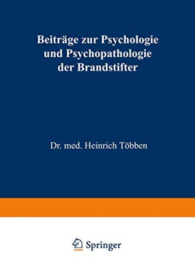 Medizinische und kriminalistische Literatur.- Statistische Mitteilungen über Brandstiftungen.- Volkswirtschaftliche Bedeutung der Brandstiftungen. Ihre Beziehungen zum Kriege. Kinderbrandstiftungen.- Großbrände und Brandstiftungen.- Beweggründe zur Brandstiftung.- 1. Die Rache und der Haß.- 2. Beweggründe, bei denen der Alkoholismus den Ausschlag gibt.- 3. Die Habsucht.- 4. Das Heimweh.- 5. Die Verschleierung eines anderen Verbrechens.- 6. Das Bestreben, vom Militär, aus einer Erziehungsanstalt oder aus dem Polizeigewahrsam fortzukommen.- 7. Die Freude am Feuer und der Mutwille.- 8. Durch Geistesstörung ausgelöste Gedankengänge.- Geisteszustand der Täter.- Stellungnahme zur Pyromanie.- Bekämpfungsvorschläge.- Schlußwort.