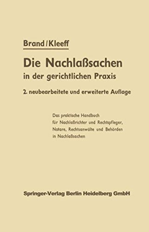 Erster Teil Die Organe der Rechtspflege in Nachlaßsachen und ihre Verfassung.- Zweiter Teil Das Verfahren in Nachlaßsachen im allgemeinen.- Dritter Teil Die Beschwerde.- Vierter Teil Die materiellrechtlichen Grundlagen des Verfahrens.- Erster Abschnitt Die Behandlung der Verfügungen von Todes wegen.- Zweiter Abschnitt Die Ausschlagung der Erbschaft.- Dritter Abschnitt Das Erbscheinsverfahren.- Vierter Abschnitt Die Mitwirkung des Nachlaßgeriehts bei der Testamentsvollstreckung und die Erteilung des Testamentsvollstreekerzeugnisses.- Fünfter Abschnitt Die Entgegennahme der auf die Fortsetzung der Gütergemeinschaft bezüglichen Erklärungen und die Erteilung des Zeugnisses über die Fortsetzung der Gütergemeinschaft.- Sechster Abschnitt Die Erteilung anderer dem Erbschein ähnlicher Zeugnisse.- Siebenter Abschnitt Die gerichtliche Fürsorge für den Nachlaß.- Achter Abschnitt Maßnahmen zur Befriedigung der Nachlaßgläubiger.- Neunter Abschnitt § 146. Sonstige Verriehtungen des Nachlaßgerichts.- Zehnter Abschnitt Das Teilungsverfahren.- Elfter Abschnitt § 151. Die Behandlung des Ausländernachlasses.- Zwölfter Abschnitt § 152. Die Kosten in Naehlaßsachen.- Anhang: Benachrichtigung in Nachlaßsachen.- Gesetzesverzeichnis.