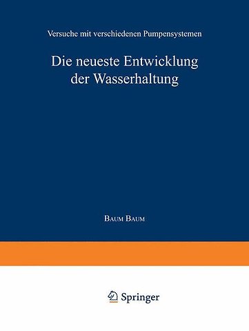 Die neueste Entwicklung der Wasserhaltung. Versuche mit verschiedenen Pumpensystemen