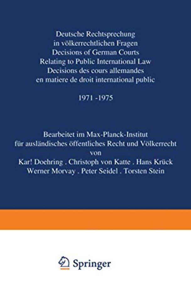 Decisions of German Courts Relating to Public International Law / Décisions des cours allemandes en matière de droit international public