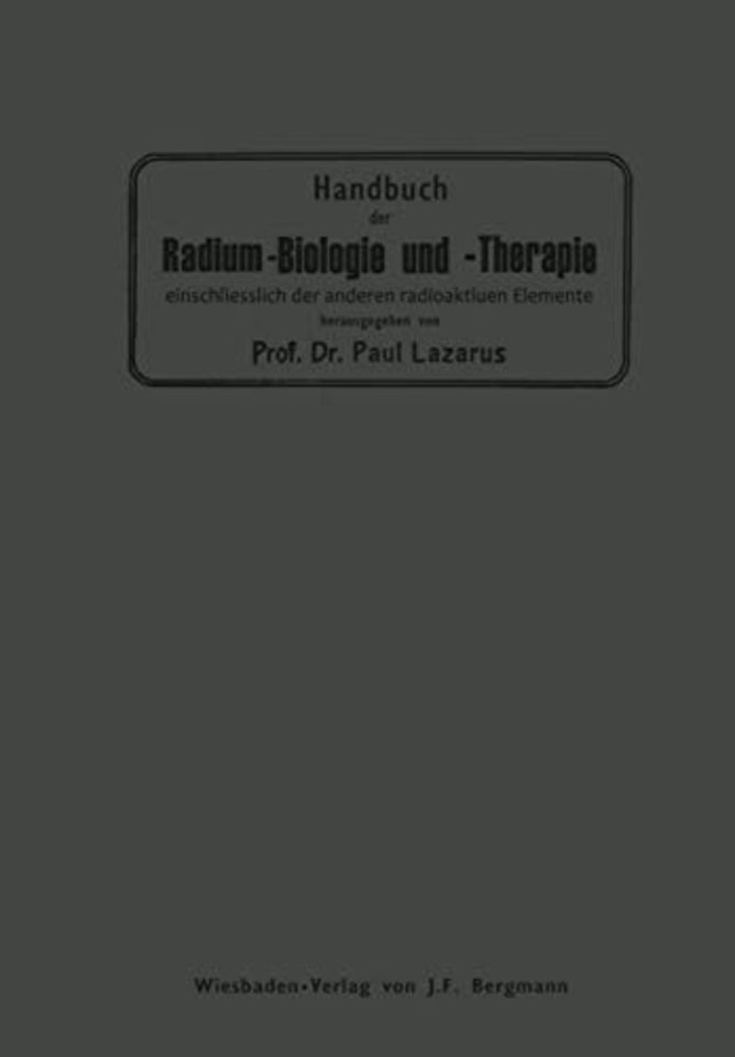 I. Teil. Physikalische, chemische und biologische Eigenschaften der radioaktiven Elemente.- I. Kapitel. Die Strahlung der radioaktiven Substanzen.- 1. Entdeckung der neuen Naturerscheinung.- 2. Eigenschaften der neuen Strahlen.- Unterschiede bei den Uranstrahlen.- Andere radioaktive Substanzen.- Analyse der Becquerelstrahlen.- Die ?-Strahlen.- Die ?- Strahlen.- Absorption der ?-Strahlen.- Die ?-Strahlen.- Natur der ?-Strahlen.- Sekundäre Strahlen.- Prinzipien der Messungsmethoden.- Allgemeine Schlußfolgerungen.- II. Kapitel. Die radioaktiven Emanationen.- Ursprung der Emanationen.- Bildung, Eigenschaften der Emanationen, Ionisationsfähigkeit.- Elektrische Ladung, Diffusion und Löslichkeit der Emanationen.- Absorption der Emanationen durch feste Körper.- Kondensation der Emanationen, Entwickelung von Helium.- Erscheinungen, die sich speziell auf die Radiumemanation beziehen.- Unterscheidung der drei Emanationen voneinander.- Emanationsmessungen, Radiumemanation, Emanationseinheit.- Beziehungen zwischen den verschiedenen Radiumemanationseinheiten.- Radiumbestimmung durch die Emanationsmethode.- Radiumemanation und gelöstes Radium in Mineralquellen.- Emanationen des Thoriums und des Aktiniums.- Vorkommen von Emanationen in der Atmosphäre.- III. Kapitel. Das Vorkommen und die chemischen Eigenschaften der radioaktiven Elemente.- I. Lagerstätten der radioaktiven Elemente.- 1. Vorkommen der radioaktiven Substanzen.- 2. Die Primärerze des Urans und des Thoriums.- 3. Die Sekundärerze des Urans und des Thoriums.- 4. Andere Lagerstätten von radioaktiven Substanzen.- 5. Gehalt einiger Erdbestandteile an radioaktiven Substanzen.- II. Chemie der radioaktiven Substanzen.- 6. Einleitung.- 7. Uran.- 8. Thorium.- 9. Radium.- 10. Polonium.- 11. Radioblei.- 12. Aktinium.- 13. Ionium.- 14. Mesothorium — Radiothorium.- 15. Uran X.- 16. Thorium X.- 17. Andere radioaktive Elemente.- 18. Allgemeines über die chemischen Reaktionen der radioaktiven Elemente von kurzer Lebensdauer.- 19. Wirkungsweisen der radioaktiven Substanzen in der Natur.- IV. Kapitel. Maße nnd Meßmethoden.- 1. Definition der Art der Strahlen.- 2. Gehaltsbestimmungen.- § 1. Messung mittelst des Sättigungsstromes, der durch die ?-Strahlen unterhalten wird.- § 2. Messungen mittelst der ?-Strahlung.- § 3. Messungen mittelst der Wärmeentwickelung.- § 4. Emanationsmessung.- V. Kapitel Der Einfluß der Radiumforschung auf die moderne Chemie.- VI. Kapitel. Chemische und physikalisch-chemische Wirkungen radioaktiver Substanzen.- I. Allgemeine Wirkung radioaktiver Substanzen auf fremde Körper — (Radium-, Thorium-, Aktiniumfamilie).- II. Chemische Veränderungen anorganischer Körper durch radioaktive Stoffe.- III. Chemische Veränderungen organischer Körper durch radioaktive Substanzen.- IV. Physikalisch — chemische Veränderungen, die von radioaktiven Stoffen hervorgerufen werden.- a) Absorptionskoeffizient der verschiedenen Emanationen.- b) Absorption der verschiedenen Strahlenarten und Adsorption von radioaktiven Stoffen.- c) Ionisation.- d) Elektrische Ladung und Entladung.- e) Wärmeentwickelung.- f) Umlagerungen, Übergang in allotrope Modifikationen und andere Phasen.- g) Leuchterscheinungen.- Schlußbetrachtungen.- VII. Kapitel.Radioaktive Stoffe und Fermente.- und Versuchsprotokolle.- I. Strahlenwirkung und Diastase.- 1. Mit Speicheldiastase vom Menschen.- 2. Mit Pankreasdiastase vom Hunde.- II. Strahlenwirkung und Pepsin.- III. Strahlenwirkung und Trypsin.- VIII. Kapitel. Die Radioaktivität und die Pflanzenbiologie. Pflanzliehe Bioradioaktivität.- I. Pflanzliche Bioradioaktivität.- II. Einfluß der Radioaktivität auf die Pflanzen.- 1. Wirkung der Becquerelstrahlen auf die Bakterien s. Kap. IX.- 2. Wirkung der Becquerelstrahlen auf die Pilze.- 3. Wirkung auf die Samenkörner.- 4. Einfluß auf die Pflanzengewebe.- 5. Wirkung auf die Tropismen.- 6. Einwirkung auf den Gasaustausch, die Atmung und die Assimilation des Chlorophylls.- 7. Einfluß auf das Wachstum.- 8. Schluß.- III. Das Radium und die Urzeugung.- IX. Kapitel. Das Radium in der Mikrobiologie und Serologie.- I. Wirkung der Radiumstrahlen auf Bakterien.- II. Versuche über die Wirkung der Emanation.- III. Die Wirkung des Radiums auf niedere Pflanzen und Tiere.- IV. Wirkung des Radiums auf submikroskopische Infektionserreger.- V. Wirkung des Radiums auf Antigene und Antikörper.- X. Kapitel. Histologie der Radium Wirkung.- XI. Kapitel. Radiumeinwirkung auf das lebende Gewebe und embryonale Entwiekelungsprozesse.- I. Beeinflussung der Kernteilungsfiguren und der Zellteilung durch Radiumbestrahlung.- II. Bestrahlung junger tierischer Embryonalstadien wie des zweigeteilten Eies, der Morula, der Blastula, der Gastrula, der Neurula etc..- III. Bestrahlung männlicher und weiblicher Keimzellen vor ihrer Verwendung zur Befruchtung.- A-Serie. Bestrahlung des befruchteten Eies während der Zweiteilung s. sub I.- B-Serie. Bestrahlung der Samenfäden allein vor ihrer Verwendung zur Befruchtung normaler Eier.- C-Serie. Bestrahlung der Eier vor der Befruchtung, zu welcher alsdann normale, unbestrahlte Samenfäden verwendet werden.- D-Serie. Eier und Samenfäden werden getrennt bestrahlt und dann erst durch Vornahme der Befruchtung untereinander verbunden.- Theoretische Ergebnisse.- II. Teil. Anwendung der radioaktiven Elemente Radium, Thorium, Aktinium in der Heilkunde.- A. Allgemeiner Teil.- XII. Kapitel. Therapeutische Anwendung der Radio-Elemente (Radium, Thorium, Aktinium).- I. Methodik der Radiumtherapie.- Radioaktivität, Strahlenabsorption und Penetration.- Spezielle Wirkungen der Strahlenenergien.- Die kutane Anwendung (lokale Bestrahlung).- Die Bäder.- Absorption der Emanation, Kataphorese.- Ausscheidung durch die Haut.- Einatmung der Bademanation.- Kontaktstrahlenwirkung auf den Hautmantel.- Bädertechnik, Emanationspackungen.- Heilquellen, Radioaktivität der Wildbäder, Gichtbäder etc.- Radioaktive Kompressen.- Hautaufladung seit dem radioaktivem Niedersc