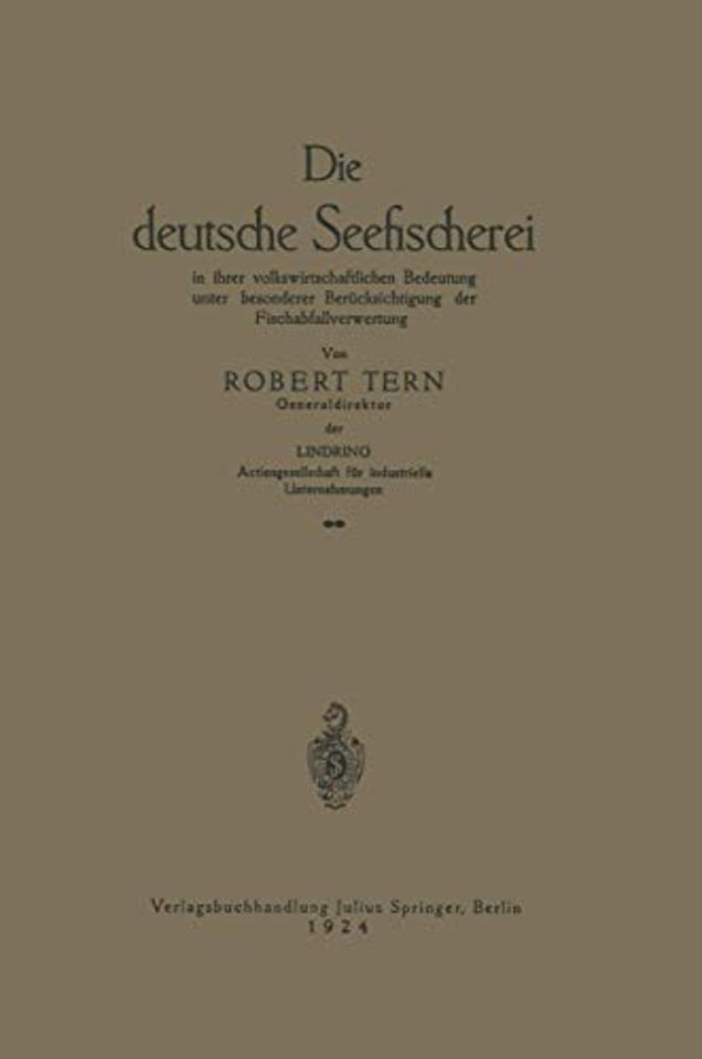 I. 1. Einleitung.- 2. Geschichtliches.- II. 1. Der Seefisch als Nahrungsmittel.- 2. Die deutsche Seefischerei vor dem Kriege.- a) Allgemeines.- b) Unternehmungen der deutschen Seefischerei.- c) Die Lage der deutschen Seefischerei vor dem Kriege.- 3. Die deutsche Seefischerei im Kriege.- 4. Die deutsche Seefischerei nach dem Kriege.- 5. Der Seefischhandel.- 6. Der Seefischhandel im Kriege.- 7. Der Heringshandel.- 8. Die Preise für Seefische.- 9. Die Fischindustrie.- a) Die Fischkonservenindustrie.- b) Die Fischabfallverwertung.- c) Neuere Wege der Fischabfallverwertung.- III. Ausblicke und Möglichkeiten.