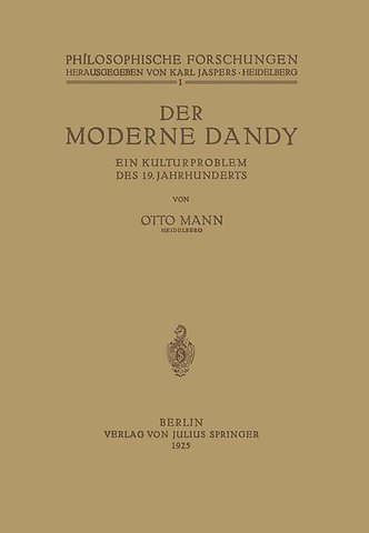 I. Der zeitliche Untergrund.- 1. Die allgemeine Kulturlage.- 2. Die Gesellschaft.- 3. England und Frankreich als Ränder des Dandysmus.- 4. Besondere Lage in England und Frankreich.- II. Die Grundlagen des Dandysmus im Subjekt.- 1. Der ästhetische Spättypus.- 2. Der negative Untergrund dandyhafter Existenz.- 3. Der Wille zur Macht.- III. Das vertretene Ideal.- IV. Die Verwirklichungsmittel.- 1. Die angeborenen Vermögen. Das Geistige.- 2. Die angeborenen Vermögen. Der Geschmack.- 3. Das Äußere.- V. Das System des Dandy.- 1. Die Mode.- 2. Das System als Schauspiel.- 3. Entfaltung des Systems und seine Prinzipien.- VI. Die Konsequenzen.- 1. Der Dandysmus als Übergang zum positiven Leben.- 2. Der Umschlag in der Bekehrung.- 3. Das ausgetragene Dandyschicksal.- Anmerkungen zur unterliegenden Literatur.