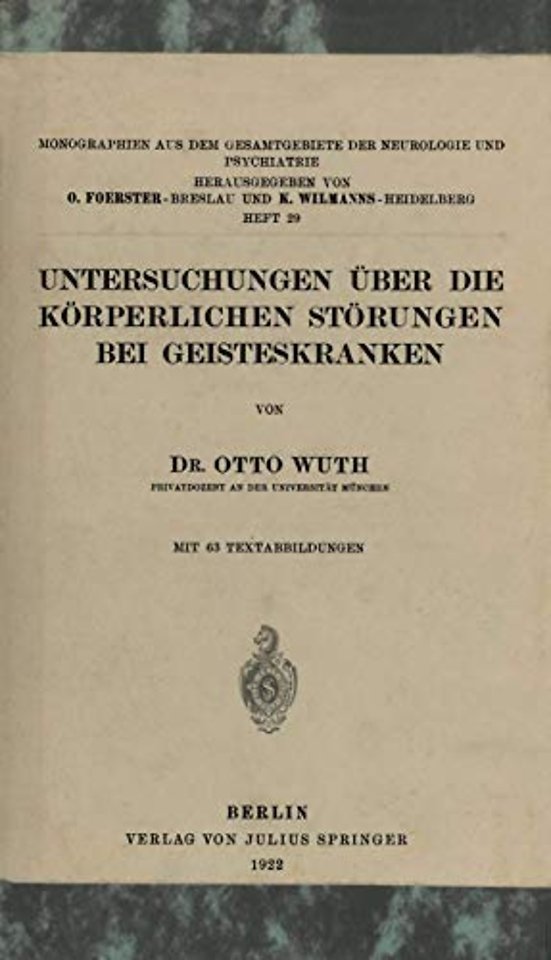 Untersuchungen Über die Körperlichen Störungen Bei Geisteskranke