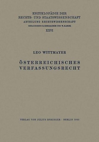 Vorgeschichte.- Bund und Länder.- Die allgemeine Demokratisierung des Verfassungsrechts.- Das Zweikammersystem im Bunde.- Die Vollziehung des Bundes.- Gesetzgebung und Vollziehung der Länder.- Rechnungskontrolle des Bundes.- Garantien der Verfassung und Verwaltung.- Verfassungsrechtliche Folgen der „Genfer Konvention“.- Schlußbetrachtung.