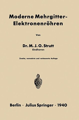 Erster Teil. Bau, Arbeitsweise, Eigenschaften.- I. Hochfrequenz-Verstärkerröhren.- § 1. Der Aufbau von Hochfrequenz-Verstärkerröhren.- § 2. Charakteristik und Steilheit.- § 3. Tetroden.- § 4. Pentoden.- § 5. Verzerrung der Verstärkung.- § 6. Modulationssteigerung, Modulationsverzerrung und Kreuzmodulation.- § 7. Regelung der Verstärkung.- § 8. Messungen der Verzerrungseffekte.- § 9. Bau moderner Hochfrequenzpentoden.- § 10. Störungen der Verstärkung.- § 11. Die charakteristischen Admittanzen der Hochfrequenzpentode.- § 12. Messungen der charakteristischen Röhrenadmittanzen zwischen 1,5 und 300 MHz.- § 13. Verstärkung im Kurzwellengebiet.- § 14. Hexoden als Regelverstärker.- § 15. Admittanzen von Regelhexoden und Regelheptoden.- § 16. Kaskadenröhren, Sekundäremissionsröhren und Elektronenbündelröhren.- § 17. Tetroden und Pentoden als Gittergleichrichter und als Anodengleichrichter.- II. Mischröhren.- § 18. Das Prinzip der Frequenzmischung.- § 19. Tetroden und Pentoden als Mischröhren.- § 20. Günstigste Einstellung der Mischröhre in bezug auf Kauschen durch Schroteffekt.- § 21. Die Hexode als Mischröhre.- § 22. Die Oktode als Mischröhre.- § 23. Exakte Berechnung der Überlagerungssteilheit aus der statischen Röhrencharakteristik bei Mischpentoden.- § 24. Berechnung der Überlagerungssteilheit bei Hexoden und Oktoden.- § 25. Verzerrungen der Überlagerungsverstärkung.- § 26. Regelung der Überlagerungssteilheit.- § 27. Pfeiftöne bei Mischröhren mit einem einzigen Eingangssignal.- § 28. Pfeiftöne bei Mischröhren mit mehreren Eingangssignalen.- § 29. Die Stärke der Pfeiftöne im Vergleich zur erwünschten Modulation.- § 30. Berechnung der Pfeiftonstärke aus der statischen Röhrencharakteristik.- § 31. Messungen von Überlagerungssteilheit, Verzerrungseffekten und Pfeiftönen.- § 32. Der Induktionseffekt bei Oktoden.- § 33. Kurzwellenerscheinungen bei Mischröhren.- § 34. Admittanzen von Mischröhren.- § 35. Frequenzverwerfung.- § 36. Störungseffekte beim Betrieb von Mischröhren.- § 37. Konstruktionen und Daten einiger Mischröhren.- III. Röhren zur niederfrequenten Leistungsverstärkung.- § 38. Allgemeines über Leistungsverstärkung.- § 39. Ausgangsleistung und Verzerrung.- § 40. Ursachen für die Abweichungen der dynamischen Charakteristik von einer Geraden.- § 41. Inselbildung und Steuergitterkonstruktion.- § 42. Verzerrungswerte für verschiedene dynamische Charakteristiken.- § 43. Konstruktive Beeinflussung der oberen Krümmung der dynamischen Charakteristik.- § 44. Röhrenschaltungen als A-, B-und A/B-Verstärker.- § 45. Anforderungen an die dynamische Charakteristik bei A- und bei B-Verstärkern.- § 46. Belastung durch Impedanzen mit Phasenwinkel.- § 47. Störungen der Leistungsverstärkung.- § 48. Messungen von Leistung und Verzerrung.- § 49. Kompensierung der Verzerrungen.- § 50. Konstruktive Verwendung des Bündelungsprinzips.- § 51. Konstruktionen und Daten einiger gebräuchlicher Endröhren.- § 52. Tabellen für die numerische Verwendung von Besselschen Funktionen in Röhrenberechnungen.- Zweiter Teil. Elektrophysikalische Grundlagen.- IV. Vorgänge in Elektronenröhren unter quasistationären Betriebsbedingungen.- § 53. Grundgleichungen, Numerisches.- § 54. Mechanische Analogien zur Elektronenbewegung.- § 55. Elektronenbewegung in idealen ebenen Dioden.- § 56. Elektronenbewegung in idealen kreiszylindrischen Dioden.- § 57. Elektronenemission einer geheizten Kathode.- § 58. Elektronenbewegung in wirklichen Dioden.- § 59. Elektronenbewegung in einer Triode.- § 60. Rechnerische Erfassung der Inselbildung.- § 61. Verfahren zur Berechnung statischer Röhrenkapazitäten.- § 62. Ergebnisse bezüglich statischer Kapazitäten.- § 63. Die Schirmgitter-Anodenstrecke (V-Strecke) einer Tetrode.- § 64. Kennlinien der V-Strecke mit Raumladung.- § 65. Messungen über V-Strecken in Hochfrequenzpentoden und Hexoden.- § 66. Messungen über V-Strecken in Oktoden und Leistungs verstärker- pentoden.- § 67. Berechnungen und Messungen dynamischer Röhrenkapazitäten.- V. Das Verhalten der Elektronenröhren im Kurzwellengebiet.- § 68. Die charakteristischen Röhrenadmittanzen im Kurzwellengebiet.- § 69. Formeln für und Messungen über die Kurzwellenadmittanzen.- § 70. Einfluß der Elektronenlaufzeiten auf die Eingangsadmittanz.- § 71. Messungen der Elektronenlaufzeiteinflüsse auf die Steilheit.- § 72. Elektronenbewegung im Bremsraum.- § 73. Messungen über Röhren mit Bremsraum.- § 74. Messungen der Elektronenbewegung in Oktoden.- § 75. Messungen über den Induktionseffekt in Oktoden.- § 76. Röhren mit gekrümmten Elektronenbahnen.- § 77. Sekundäremissionsröhren.- § 78. Elektronenrauschen von Widerständen und Dioden.- § 79. Formeln für und Messungen über das Rauschen von Mehrgitterröhren.- § 80. Bemerkungen über die Elektrodentemperaturen.- § 81. Anhang.- Schrifttum.