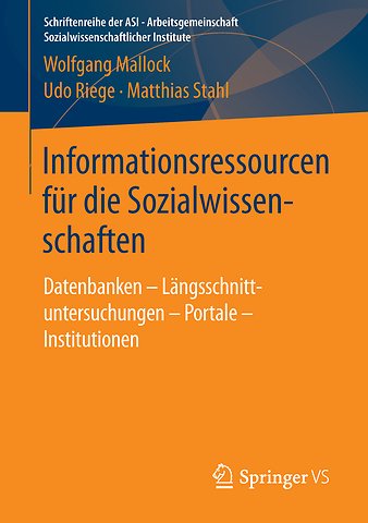 Das Buch gibt einen strukturierten Überblick über ca. 360 Informationsressourcen für die Sozialwissenschaften. Beschrieben werden relevante Fachportale, Längsschnittuntersuchungen und Datenbanken. Die strukturierten Beschreibungen beinhalten u.a. eine kurze Selbstdarstellung, Informationen über Zugangsmöglichkeiten und –bedingungen sowie eine Fachgebietszuordnung. Ergänzt wird die Zusammenstellung durch eine Übersicht über relevante Institutionen, Forschungseinrichtungen, Forschungsdatenzentren und überregionale Informationsanbieter. Ein Fachgebietsregister erschließt alle Informationsressourcen.