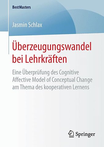 Jasmin Schlax untersucht an zukünftigen Lehrkräften den Wandel von Überzeugungen bezüglich der Unterrichtsgestaltung unter Hervorhebung von kooperativen Lehrmethoden. Abgeleitet aus dem Cognitive Affective Model of Conceptual Change findet sie dabei verschiedene Einflussfaktoren auf den Überzeugungswandel und legt hiermit zudem eine erste umfassende empirische Prüfung dieses Gesamtmodells vor.