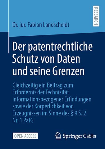 Daten verfügen als digitale Güter über enormes Innovationspotential. Die Möglichkeit der Patentierung von Daten ist jedoch bisher weitgehend unerforscht. Ausgehend von einem patentrechtlich definierten Datenbegriff entwickelt Dr. jur. Fabian Landscheidt in diesem Open-Access-Buch daher praxistaugliche, verfassungskonforme und mit der aktuellen Entscheidungspraxis der deutschen und europäischen Spruchkörper in Einklang stehende Fallgruppen zur Datenpatentierbarkeit. Gleichzeitig durchleuchtet er dabei kritisch die Konzepte der Technizität von Erfindungen sowie der Körperlichkeit von Verfahrens- und Sacherzeugnissen im Grenzbereich zwischen Mensch- und Maschinen-Kommunikation.
