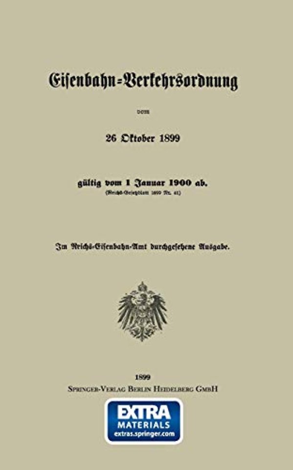Eisenbahn-Verkehrsordnung vom 26 Oktober 1899 gültig vom 1 Januar 1900 ab. (Reichs-Gesetzblatt 1899 Nr. 41)
