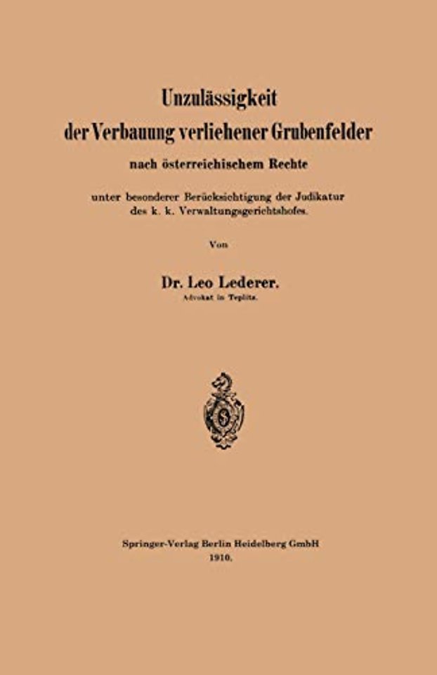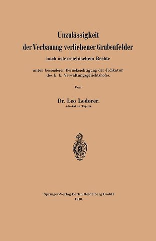 Unzulässigkeit der Verbauung verliehener Grubenfelder nach österreichischem Rechte unter besonderer Berücksichtigung der Judikatur des k. k. Verwaltungsgerichtshofes