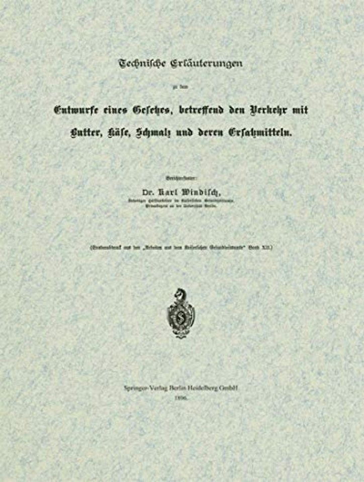 Technische Erläuterungen zu dem Entwurfe eines Gesetzes, betreffend den Verkehr mit Butter, Käse, Schmalz und deren Ersatzmitteln
