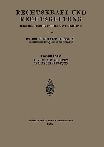 Erster Band: Genesis und Grenzen der Rechtsgeltung