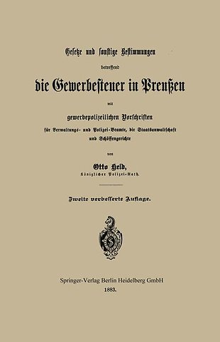 Gesetze und sonstige Bestimmungen betreffend die Gewerbesteuer in Preußen mit gewerbepolizeilichen Vorschriften für Verwaltungs- und Polizei-Beamte, die Staatsanwaltschaft und Schöffengerichte