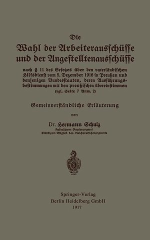 Die Wahl der Arbeiterausschüsse und der Angestelltenausschüsse nach § 11 des Gesetzes über den vaterländischen Hilfsdienst vom 5. Dezember 1916 in Preußen und denjenigen Bundesstaaten, deren Ausführungsbestimmungen mit den preußischen übereinstimmen (vgl.