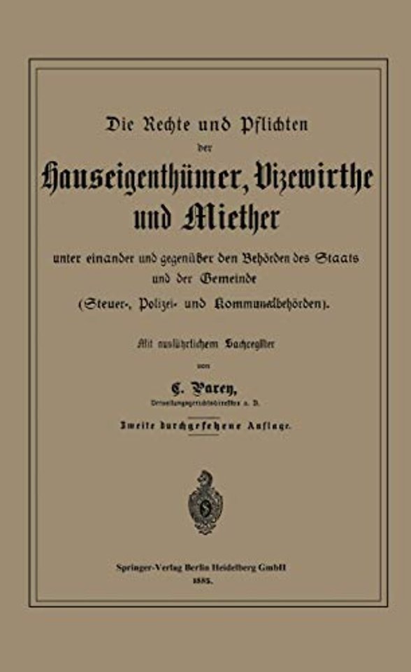 Die Rechte und Pflichten der Hauseigenthümer, Vizewirthe und Miether unter einander und gegenüber den Behörden des Staats und der Gemeinde