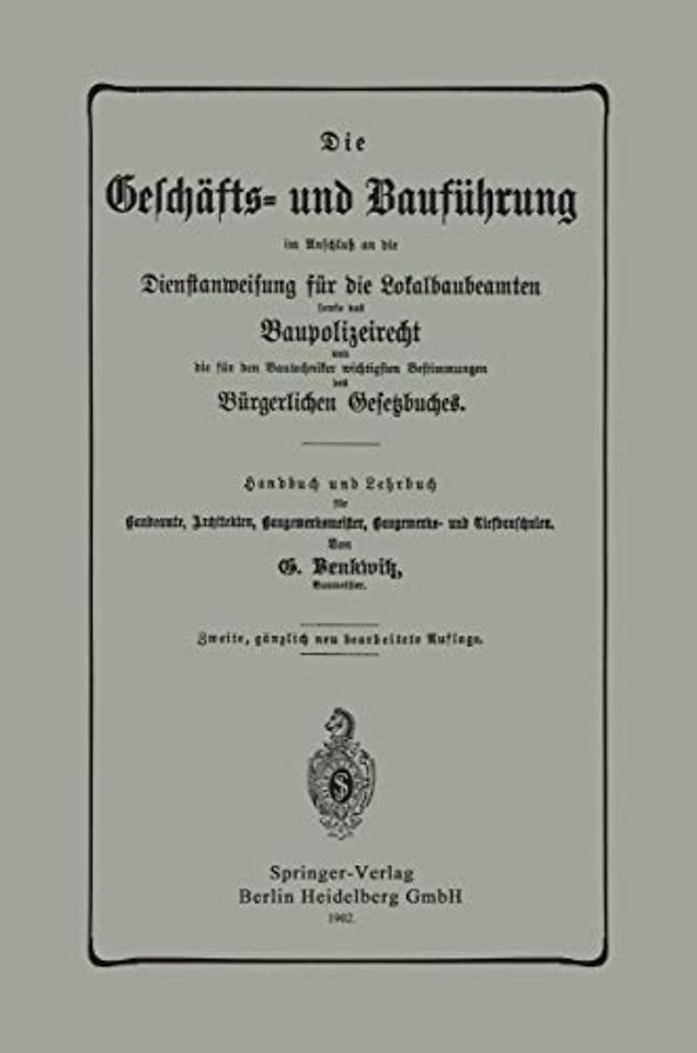 Die Geschäfts- und Bauführung im Anschluß an die Dienstanweisung für die Lokalbaubeamten sowie das Baupolizeirecht und die für den Bautechniker wichtigsten Bestimmungen des Bürgerlichen Gesetzbuches