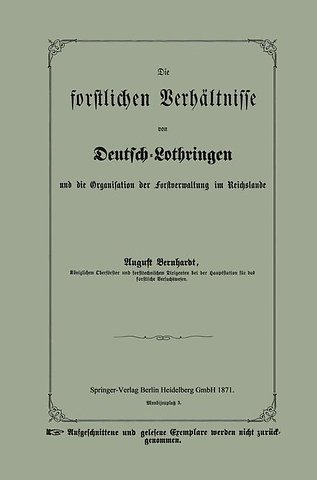 Die forstlichen Verhältnisse von Deutsch-Lothringen und die Organisation der Forstverwaltung im Reichslande