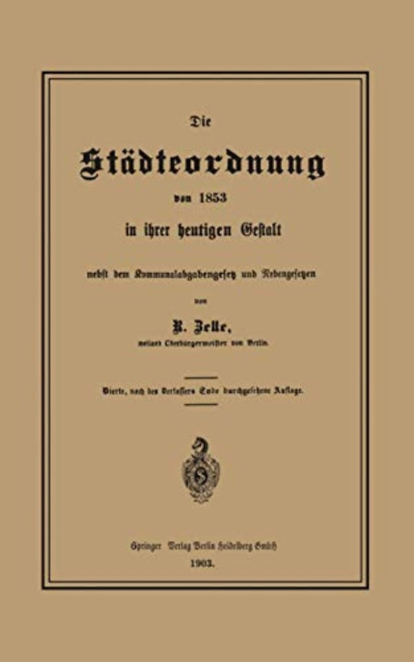 Die Städteordnung von 1853 in ihrer heutigen Gestalt nebst dem Kommunalabgabengesetz und Nebengesetzen