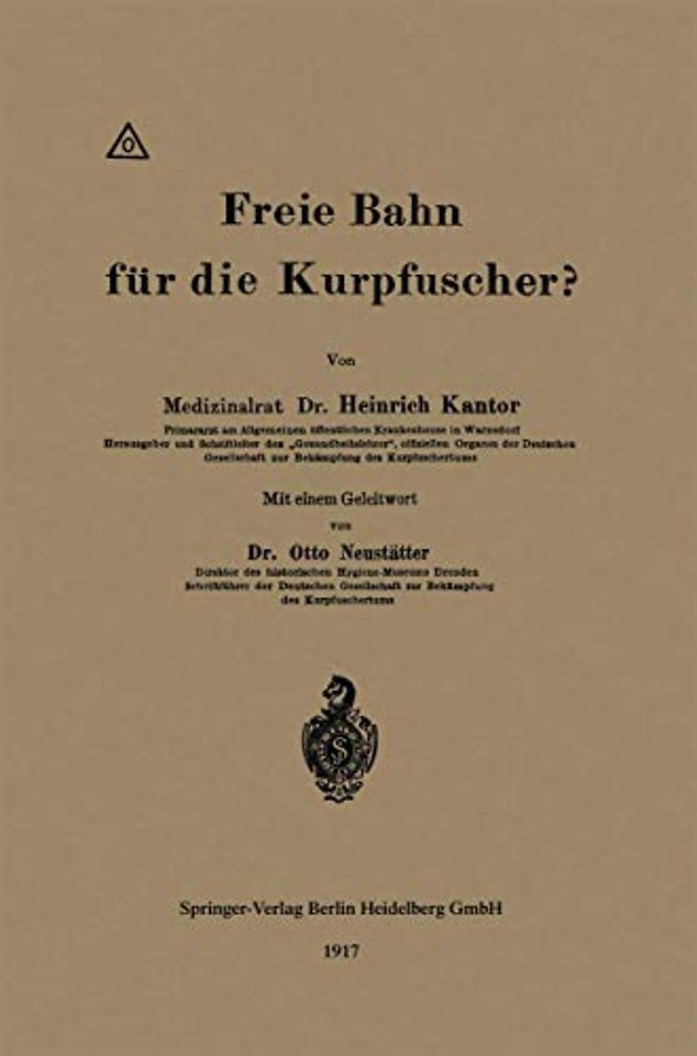 Dieser Buchtitel ist Teil des Digitalisierungsprojekts Springer Book Archives mit Publikationen, die seit den Anfängen des Verlags von 1842 erschienen sind. Der Verlag stellt mit diesem Archiv Quellen für die historische wie auch die disziplingeschichtliche Forschung zur Verfügung, die jeweils im historischen Kontext betrachtet werden müssen. Dieser Titel erschien in der Zeit vor 1945 und wird daher in seiner zeittypischen politisch-ideologischen Ausrichtung vom Verlag nicht beworben.