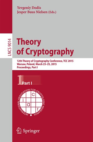 The two-volume set LNCS 9014 and LNCS 9015 constitutes the refereed proceedings of the 12th International Conference on Theory of Cryptography, TCC 2015, held in Warsaw, Poland in March 2015.