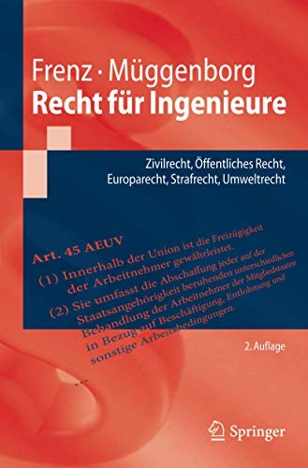 „Recht für Ingenieure" beschreibt die zentralen Rechtsgebiete Zivilrecht, Öffentliches Recht und Europarecht allgemeinverständlich und kompakt. Dadurch erhält der Leser eine gute Einführung und lernt, rechtliche Schwierigkeiten zu erkennen und in einfachen Fällen auch zu lösen. Ein besonderer Schwerpunkt liegt im Vertragsrecht mit seinen für die tägliche Praxis relevanten Fragen. Im öffentlichen Recht steht der Umgang mit Behörden im Vordergrund, im Europarecht geht es vor allem um die Möglichkeiten grenzüberschreitender Unternehmensaktivitäten.