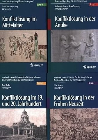 Das vierbändige Werk „Handbuch zur Geschichte der Konfliktlösung in Europa“ wurde von namhaften internationalen Expertinnen und Experten geschrieben und dient als zentrales Referenzmedium für die historische Dimension aller Formen der Streitentscheidung. Der Aufbau orientiert sich an den vier Epochen Antike, Mittelalter, Frühe Neuzeit und 19./20. Jahrhundert. Zugleich wird eine europäische Perspektive eingenommen, die sich sowohl in den einzelnen Kapiteln als auch in speziellen Länderforschungsberichten niederschlägt. Nach einer Einführung in die jeweilige Epoche werden einerseits Konfliktlösungsmodelle und -institutionen sowie andererseits Kernfragen und Zentralprobleme behandelt. Rechtshistorische Dokumente runden die Darstellung ab.