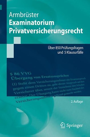 Das Examinatorium umfasst über 850 Fragen und Antworten sowie fünf Klausurfälle mit Lösungshinweisen zum Privatversicherungsrecht. Der inhaltliche Schwerpunkt liegt auf dem Versicherungsvertragsrecht des VVG; einbezogen werden aber auch das Gleichbehandlungsrecht (AGG), das Versicherungsaufsichtsrecht, das Versicherungsunternehmensrecht sowie Fragen des internationalen Rechts (Kollisionsrecht, europäisches Versicherungsvertragsrecht). Das Werk ermöglicht insbesondere Studierenden, aber auch allen mit der Materie in der Praxis befassten Juristen, ihren Wissensstand zu überprüfen sowie zu erweitern.