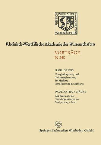 Energieeinsparung und Solarenergienutzung im Hochbau — Erreichtes und Erreichbares. Die Bedeutung der Verkehrsplanung in der Stadtplanung — heute