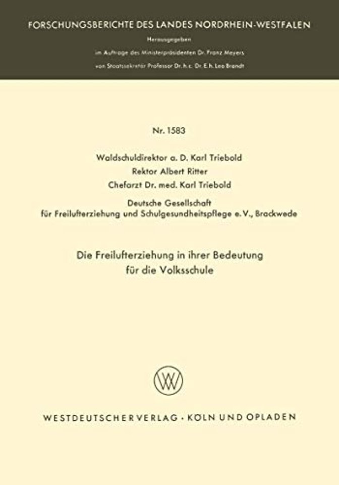 Die Freilufterziehung in ihrer Bedeutung für die Volksschule