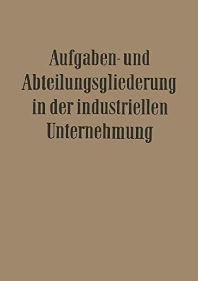 Aufgaben- und Abteilungsgliederung in der Industriellen Unternehmung