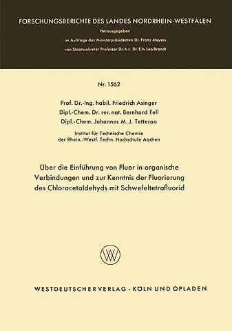 1. Allgemeine Methoden zur Einführung von Fluor in organische Verbindungen.- 2. Fluorierung organischer Sauerstoffverbindungen mit Schwefeltetrafluorid.- 3. Umsetzung von Chloracetaldehyd mit Schwefeltetrafluorid als Beispiel einer Fluorierung mit SF4.- 4. Beschreibung der Versuche.- 5. Zusammenfassung.- 6. Literaturverzeichnis.