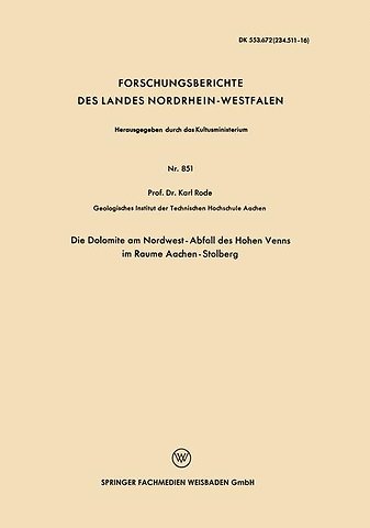 Gliederung.- 1. Einleitung.- 2. Die Kartierung und ihre Auswertung.- 3. Die Analysen: Methoden und Ergebnisse.- 4. Folgerungen aus 2. und 3. zur Genese der Dolomite im Arbeitsgebiet.- 5. Gewinnbare Dolomitvorkommen.- 6. Zusammenfassung.- 7. Literaturverzeichnis.- 8. Anhang: Tabellen, Tafeln und Abbildungen.