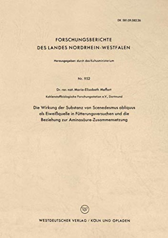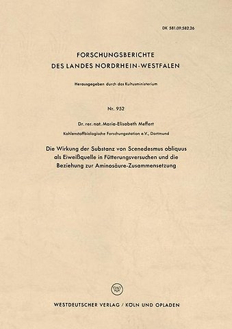 Die Wirkung der Substanz von Scenedesmus obliquus als Eiweißquelle in Fütterungsversuchen und die Beziehung zur Aminosäure-Zusammensetzung