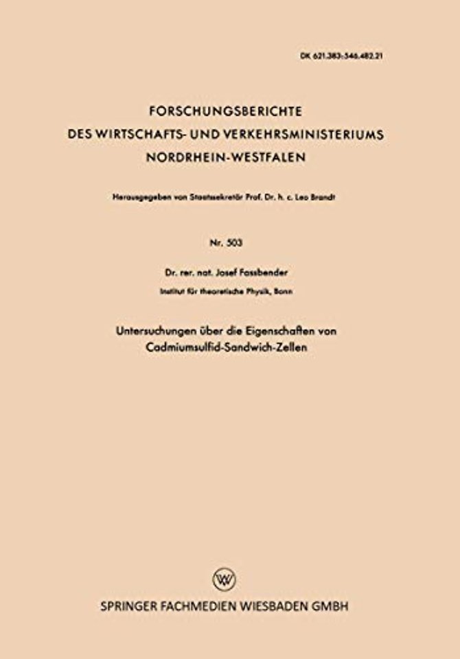 Untersuchungen über die Eigenschaften von Cadmiumsulfid-Sandwich-Zellen