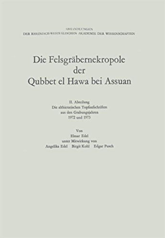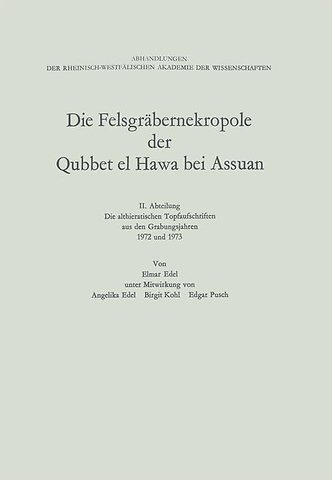 Die 11. Abteilung der Publikation der Felsgräber der Qubbet el Hawa, der der vor liegende Band angehört, ist zur Entlastung der für die I. Abteilung vorgesehenen Bände gedacht, die die Architektur, Reliefs, Inschriften und sonstigen Beigaben dieser Gräber bringen sollen; in den Bänden der H. Abteilung werden dagegen wegen ihrer enormen Menge die althieratisch beschrifteten Töpfe zusammengestellt und kommentiert, die sich in diesen Gräbern gefunden haben. Auf diesen Töpfen werden die Art der als Grabbeigaben in diesen Töpfen mitgegebenen Früchte und vielfach auch die Titel, Namen und Filiations angaben der Spender - in manchen Fällen auch des Bestatteten - angegeben. Gerade die mit Namen versehenen Gefäße sind naturgemäß von ganz besonderem historischen Interesse, da sie uns eine Menge Synchronismen an die Hand geben und die relative Chronologie der Gräber klären helfen. Der vorliegende Band dieser H. Abteilung umfaßt zum weitaus überwiegenden Teil die beschrifteten Töpfe aus den vier Schächten des von uns 1972 und 1973 neu ausgegrabenen Felsengrabes 88, das uns die einmalige Rekordernte von nicht weniger als 434 beschrifteten Töpfe geliefert hatte. Dazu kommen einige wenige Töpfe, die sich 1973 bei der Fortsetzung der Säuberung von Grab 26 fanden (26/315. 316 auf Taf. 1), und ein vereinzelter be schrifteter Topf, der im Sand verworfen außerhalb des Kontextes eines Grabes gefunden wurde (0/1449 aufTaf. 112). Schließlich wurde noch eine Nachlese von zwölf Topfaufschriften aus dem 1972 gefundenen Grab 89 gegeben, deren Hauptmasse bereits 1971 veröffentlicht worden warl.