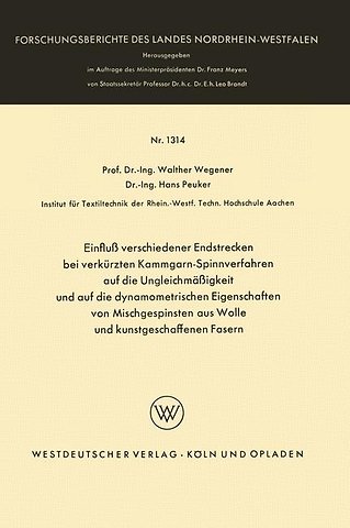 Einfluß verschiedener Endstrecken bei verkürzten Kammgarn-Spinnverfahren auf die Ungleichmäßigkeit und auf die dynamometrischen Eigenschaften von Mischgespinsten aus Wolle und kunstgeschaffenen Fasern